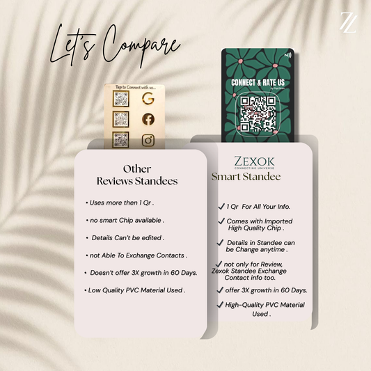 Zexok isn’t just different—it’s unmatched. Sleek, smart, and built to impress, it leaves paper cards and basic NFC behind. This is what modern networking feels like.